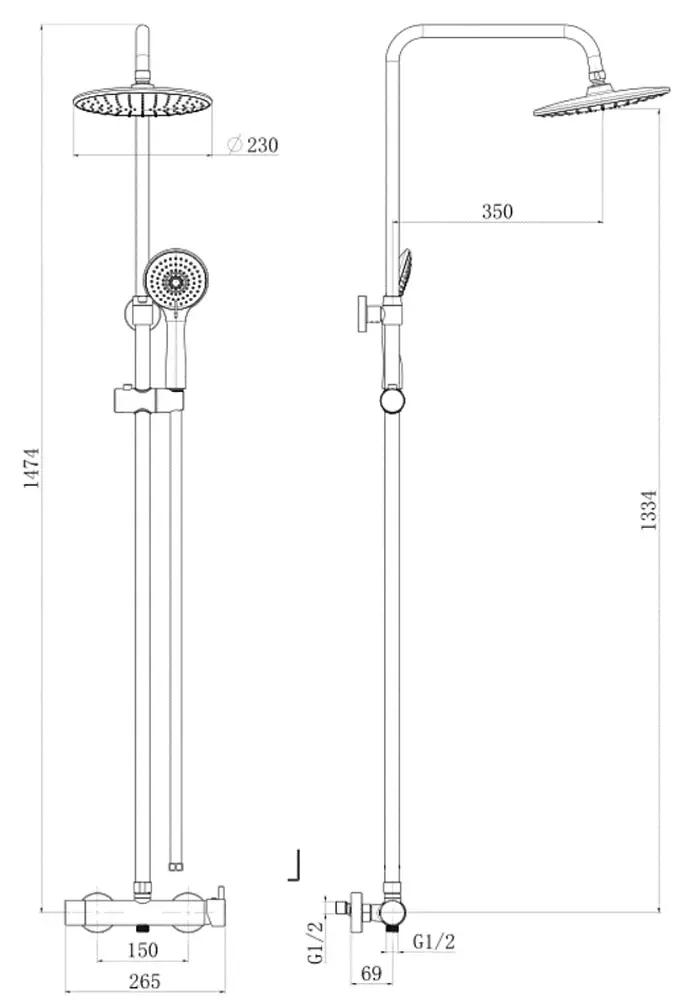 Высота верхнего душа: 1334 мм