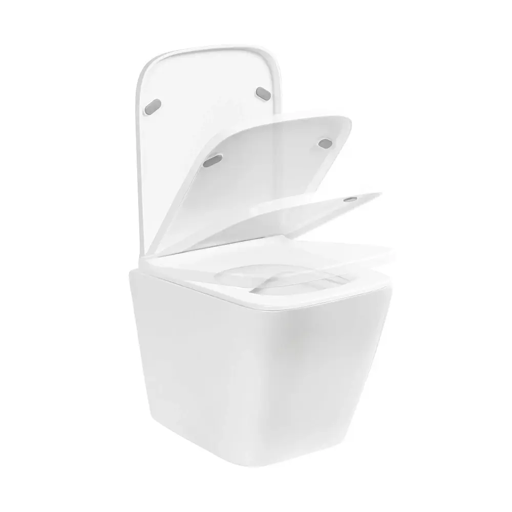 - • Сиденье из дюропласта с микролифтом позволяет плавно опускать крышку.